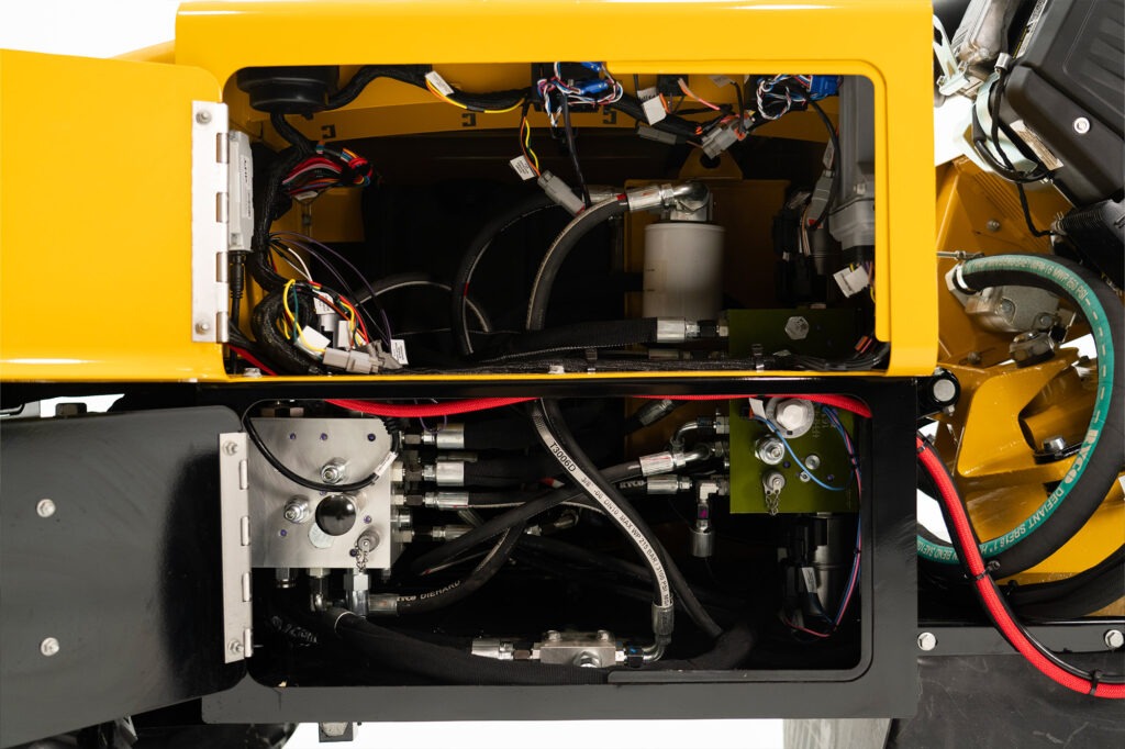 Nastavitelná rychlost otáček pomáhá udržovat pracovní krouticí moment a maximalizovat produktivitu nad i pod úrovní terénu. Standardní systém pohonu všech kol 4WD pomáhá omezit narušení terénu a zároveň udržuje mobilitu stroje v náročných podmínkách.