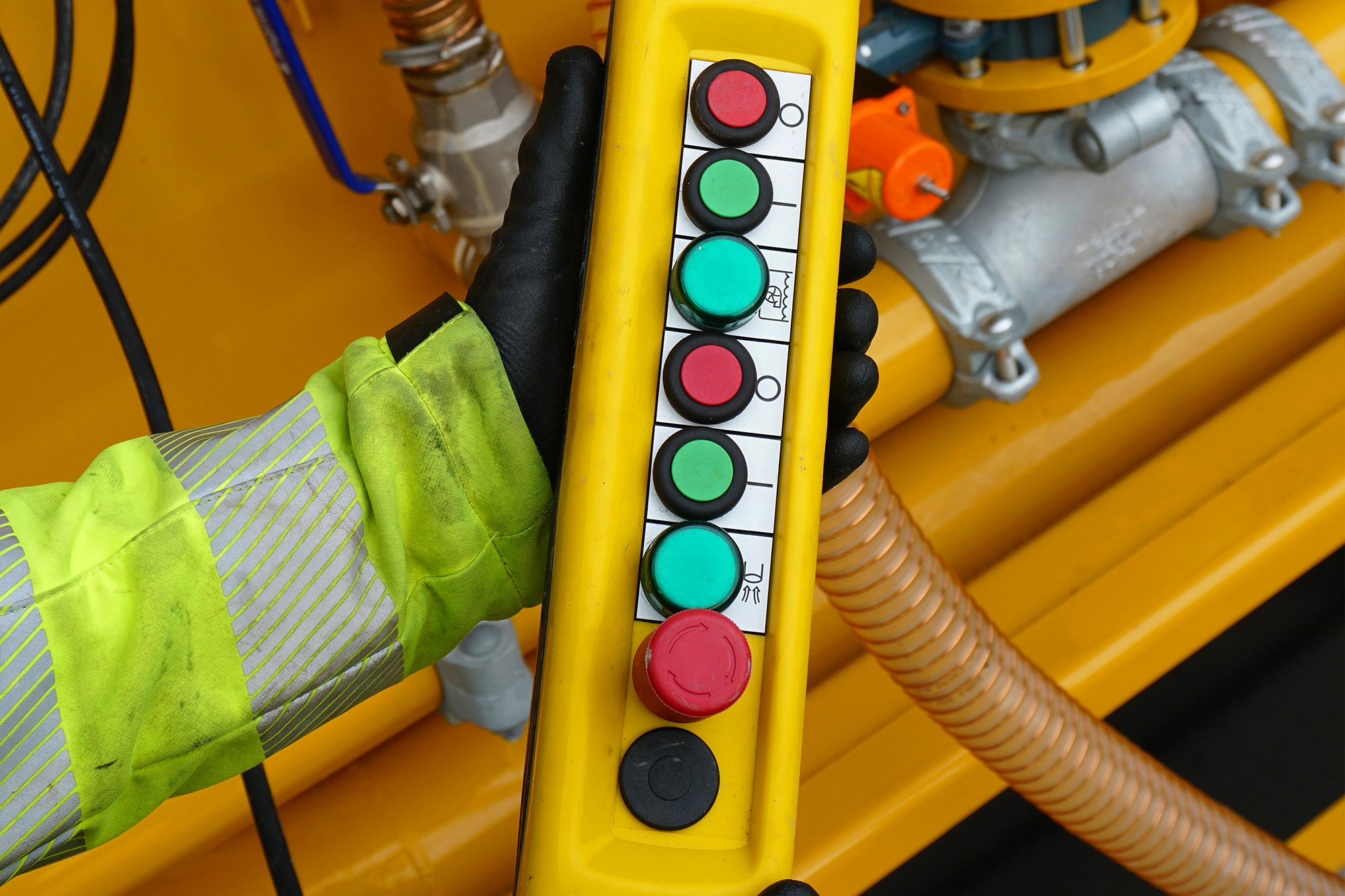 Kompaktní velikost kontejnerové nástavby ISO (20 stop / 6.09 m) minimalizuje rozměry a zjednodušuje transport jednotky. Míchací a recyklační systém se hydraulicky pro transport zasunuje do vnitřku kontejneru a pro práci se jednoduše otočením ovládacího tlačítka vysunuje nad víko kontejneru.Hákový zdvihací systém